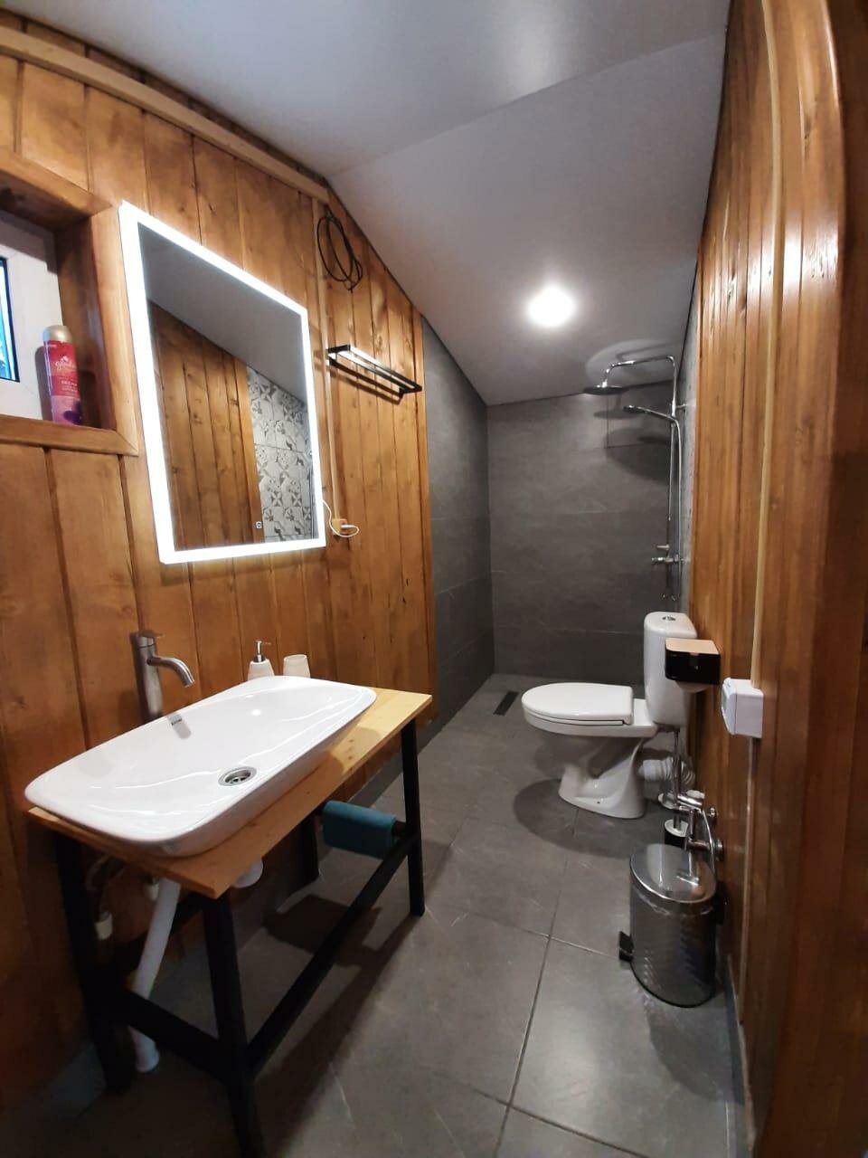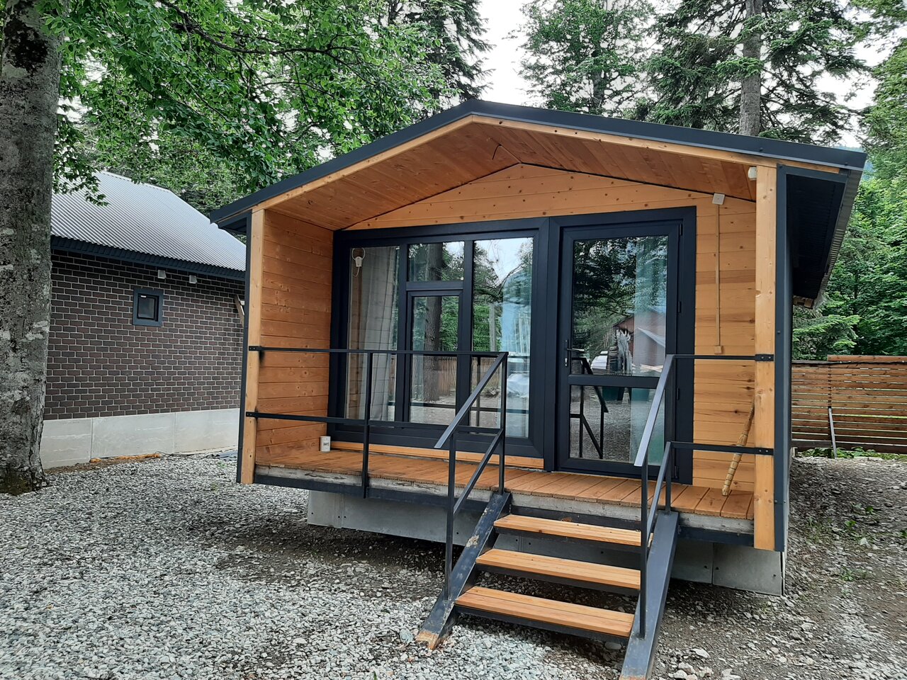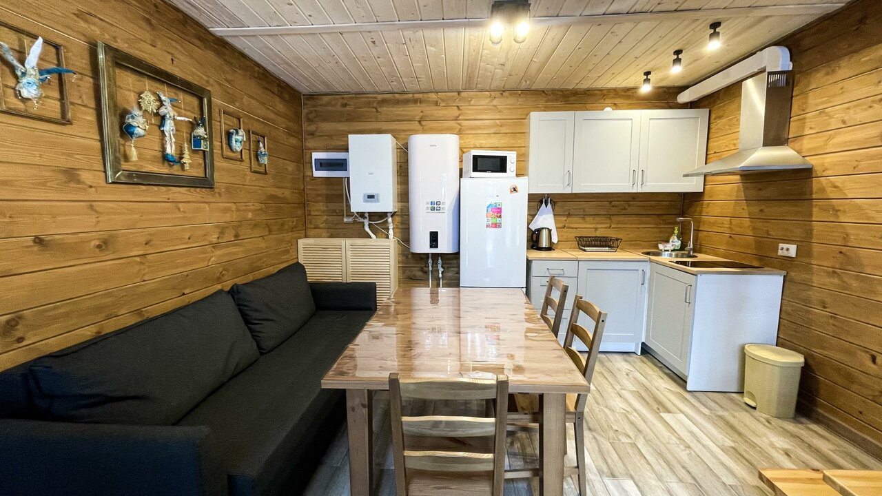 В домиках есть всё необходимое( холодильник, микроволновая печь,посуда,комфортные места для обеда, горячая вода, отопление и многое другое). Всё новое,стильное и комфортное. Постельное белье и полотенца нам предоставили. На территории есть беседка , мангалы ,место для авто. В общем , место на 5 баллов,тишина и покой. Минут 5 ходьбы к главной улице,на которой много магазинов. Рекомендуем отдыхать в Игилике.